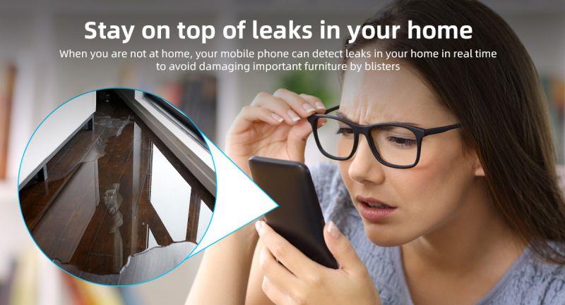 Smart Water Leak Detector , which can provide smart water leak detector solutions, issue alarms in time, and notify people remotely, so that they can take timely action to protect their family and property. This Tuya WiFi smart water leak alarm uses advanced water leak detection technology to detect flooding in a timely and accurate manner. Once flooding is detected, it will immediately sound an alarm to remind people of the possible dangers in their home. At the same time, it is also equipped with a remote notification function. When people are not at home, they can receive alarm information through the mobile phone App and take timely measures to avoid the expansion of losses.
