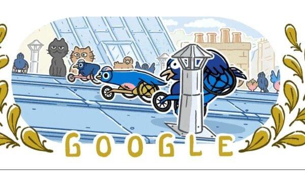 Today's Google Doodle aligned with the basic theme of representing sports players as birds and animals. As the players were gearing up for a race with all the protective tools, the action began after the race started.