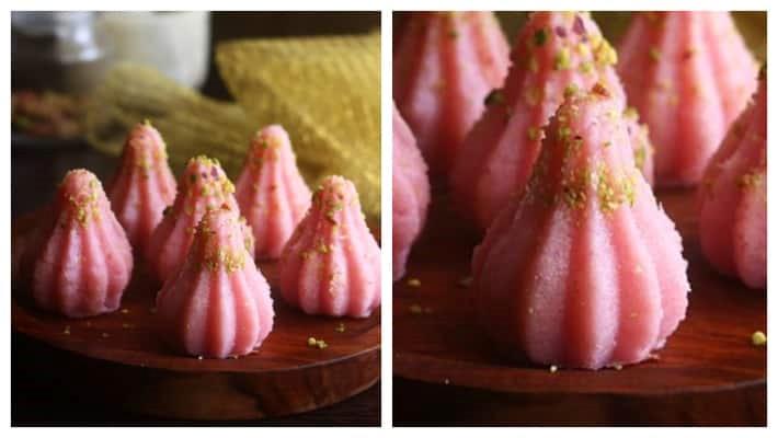 These pink-hued modaks are sure to tempt everyone. To offer them to Lord Ganesha on Ganesh Chaturthi 2024, add rose syrup and a little beetroot juice to the modak dough for a light pink color