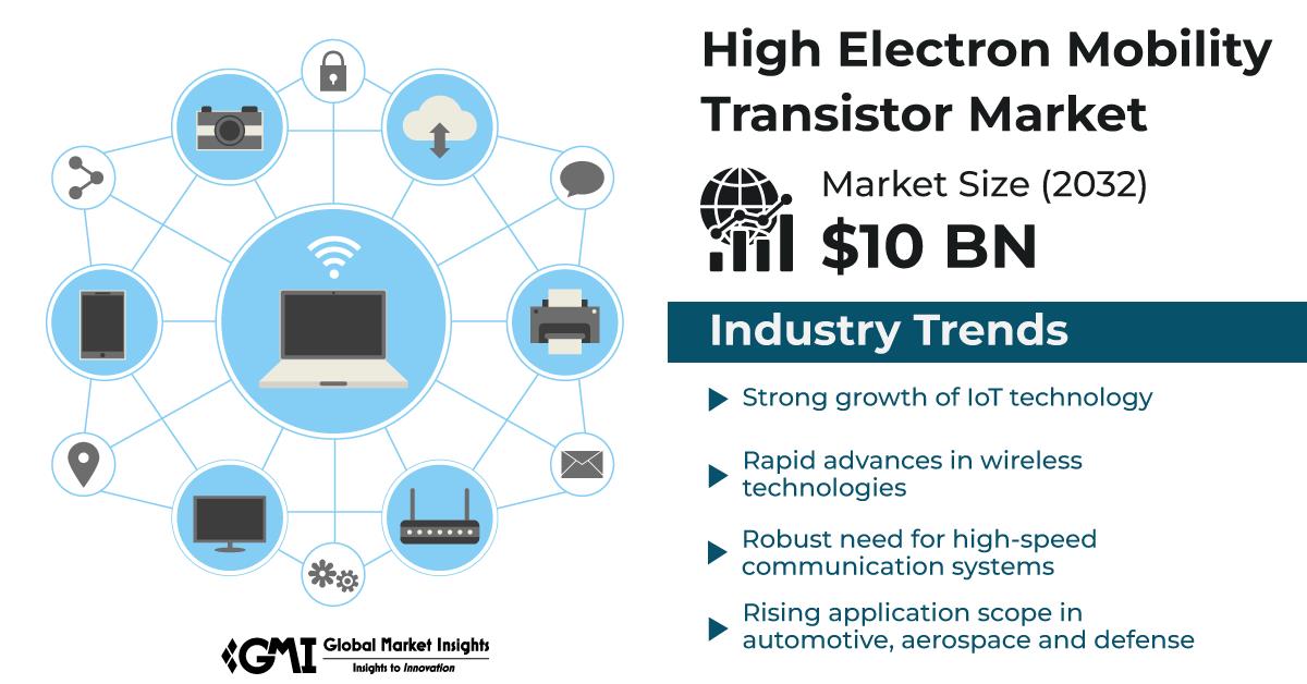 High Electron Mobility Transistor Market To Record USD 10 Billion By 2032, Says Global Market Insights Inc.