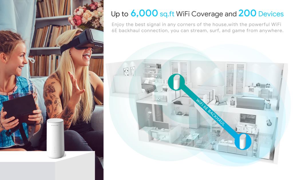 Coverage for homes up to 6,000 square feet, ensuring strong, reliable WiFi in every room.