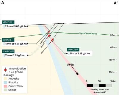 The first 2024 drilling programme successfully confirmed the potential for Gbongogo to extend further south as a result of significantly improving the definition of mineralisation. As shown in Figure 5 below, results were defined from orientated drill-holes perpendicular to the interpreted mineralised structures that enabled an interpretation of an estimated 40-metre wide corridor in which multiple mineralised zones occur. In Q4-2024, the drilling programme is expected to include systematic infill drilling on Gbongogo South with the objective of delineating a maiden mineral resource estimate. The additional holes aim to delineate extensions both along strike and down dip on known mineralisation.