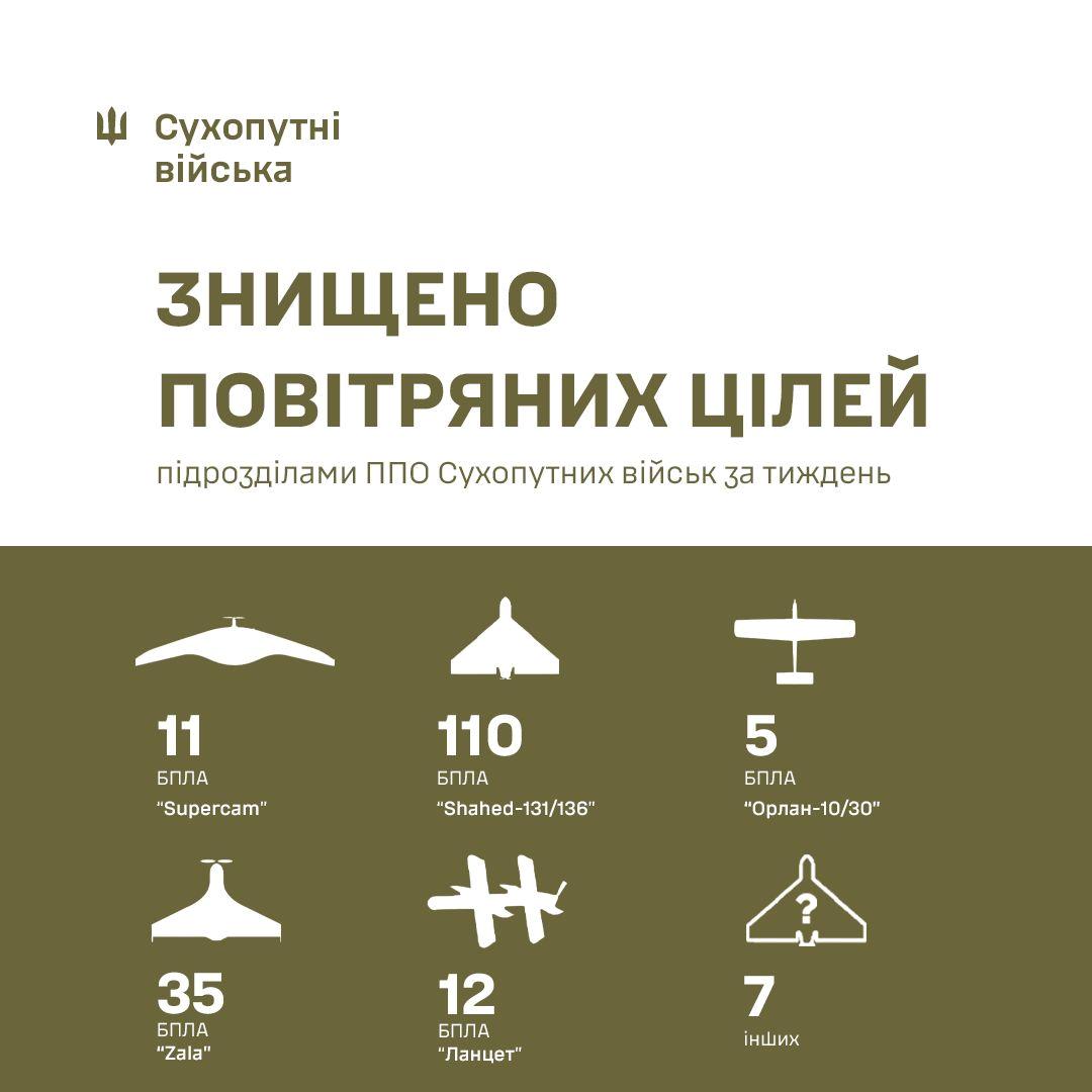 "Ground Forces' air defense destroyed 180 enemy reconnaissance and attack aerial vehicles last week," the statement reads.