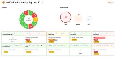 Wallarm's OWASP API Security Dashboard shows how a customer's environment is protected from the OWASP API Top 10, including recommendations for addressing any gaps in protection.
