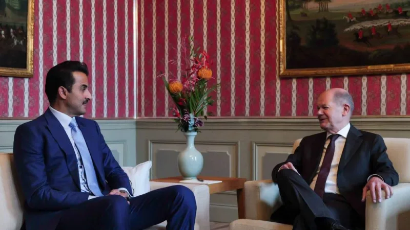 (MENAFN- Gulf Times) His Highness the Amir Sheikh Tamim bin Hamad Al-Thani and the Chancellor of the Federal Republic of Germany Olaf Scholz held an official session of talks at the Meseberg Palace in Brandenburg on Tuesday.