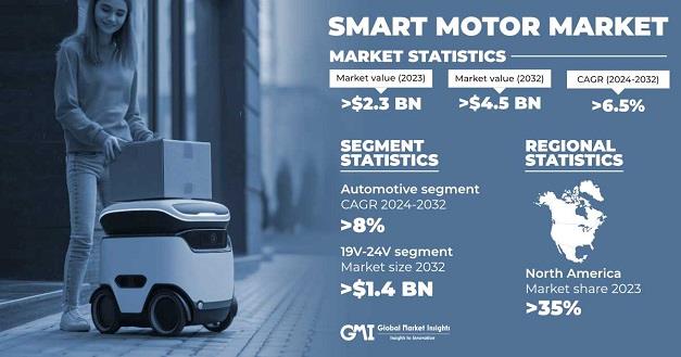 Selbyville, Delaware, Oct. 29, 2024 (GLOBE NEWSWIRE) -- Smart Motor Market was valued at USD 2.3 billion in 2023 and is projected to be worth USD 4.5 billion by the end of 2032, as per a recent study by Global Market Insights Inc.