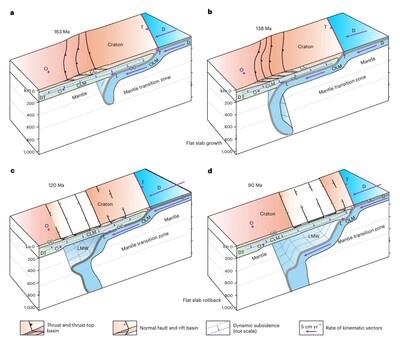 Prof. Liu says, "We successfully developed a new mantle-flow model incorporating flat-slab and rollback subduction, which aligns with surface geological evolution and the present-day mantle slab structure. Interestingly, our validated model can effectively describe the space–time dynamics