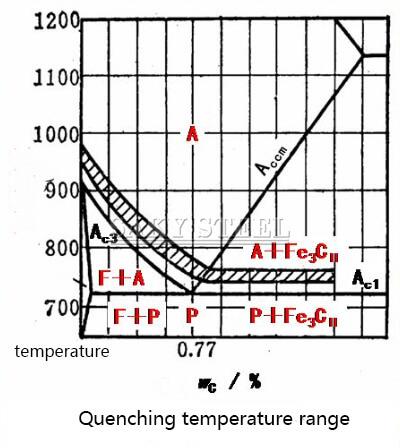 1. Definition of Quenching: Quenching involves heating steel to a certain temperature above the Ac3 or Ac1 point, holding it at that temperature, and then cooling it at a rate greater than the critical cooling rate to form martensite.2. Purpose of Quenching: The primary goal is to obtain martensite (or sometimes lower bainite) to increase the hardness and wear resistance of the steel. Quenching is one of the most important heat treatment processes for steel. 3.Determining Quenching Temperatures for Different Types of Steel