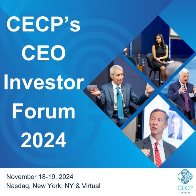 "Short-term market pressures often clash with long-term goals," said Daryl Brewster, CEO of CECP. "The CEO Investor Forum helps companies align their purpose, capital, and innovation to address global challenges while building investor confidence in long-term solutions regarding the opportunities and risks with AI."