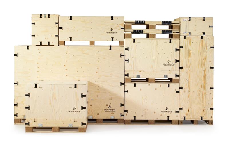 Clip-Lok SimPak's new design incorporates a robust steel pallet with the brand's signature reusable wooden panels. The packaging system retains Clip-Lok's traditional advantages: