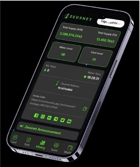 For users eager to start mining or explore the new NFT offerings, the Telegram bot t.me/zeusnet_app_bot provides an intuitive and seamless experience. Stay informed about project updates and announcements through Zeusnet's official Telegram channel t.me/zeusnetofficial and website Zeusnet.