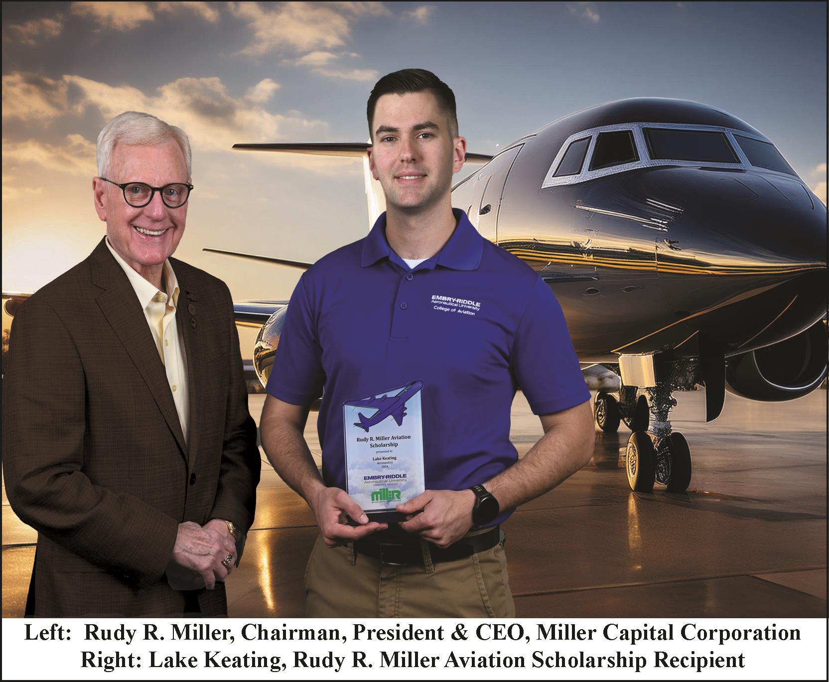 Rudy R. Miller, Chairman, President & CEO of The Miller Group and related entities, remarked,“Lake Keating is a meritorious recipient of this important aviation scholarship award and, as a former member of the U.S. Armed Forces, I am extremely proud of his past service to our country and I foresee numerous future opportunities for him. We have spent some quality time together. I found Lake to be strong-minded, committed, serious, and an extremely intelligent individual who is a leader that will inspire other veterans and non-veterans to pursue careers in aviation.