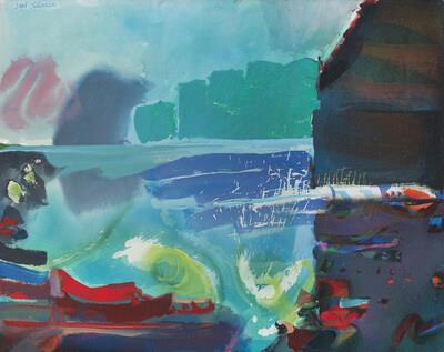 Syd Solomon (1917-2004) was an American artist known for his abstract paintings. A common theme in his artwork is the exploration of abstraction and the interaction between nature and human experience. His paintings reflect his deep connection to the environment, with vibrant colors and dynamic compositions that evoke a sense of movement and energy.