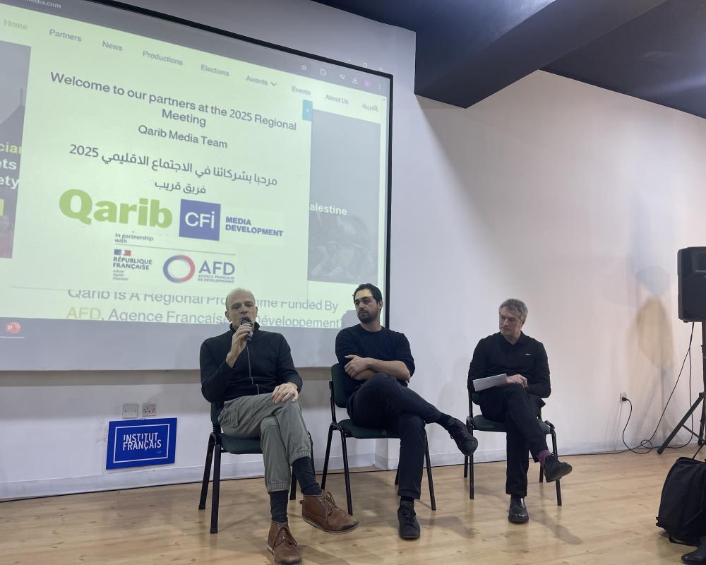 Speakers also shared case studies on self-financing models, including paywalls, media service offerings, and television production. The panel featured Fouad Khoury-Hallou, Director of L'Orient-Le Jour in Lebanon, and Jean Qassir from Lebanon's Megaphone platform, with Henrik Ahrens of CFI moderating the discussion.