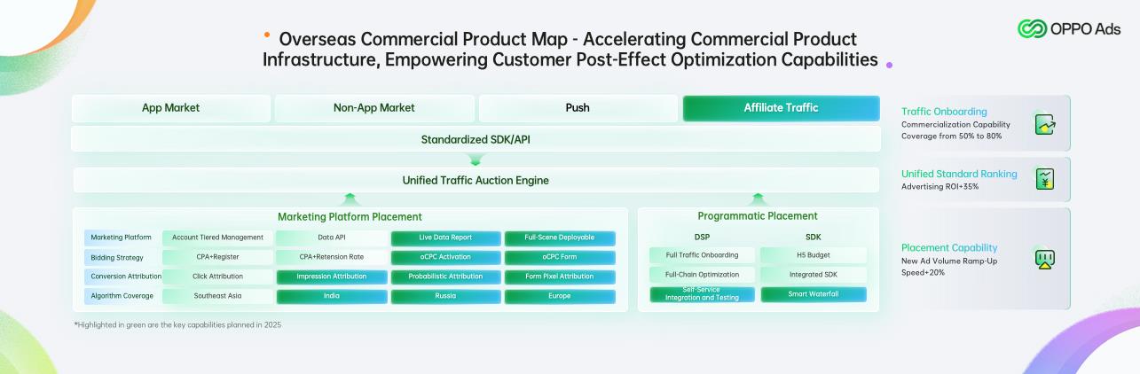 Marketing Platform Capability Upgrade : OPPO Ads has comprehensively upgraded its marketing platform to include new features like splash screens, enabling advertisers to engage users across all scenarios and manage all types of promotions. During the mid-investment phase, the platform supports RTA (Real-Time API) optimization and utilizes multiple bidding strategies to help ensure backend conversion costs, effectively increasing backend ROI by over 10%. In the post-advertising phase, enhanced attribution capabilities and OS data monitoring cater to advertisers' needs for effect attribution, making marketing results quantifiable. Programmatic Ad Efficiency Improvements: OPPO Ads has intensified efforts to boost the effectiveness of programmatic ads, facilitating DSP (demand-side platform) participation and optimizing advertising features across the board, greatly increasing exposure, winning bids, and engagement. It also allows DSP access to all traffic, leading to more than a 200% increase in request volume. PUSH Marketing Solution: OPPO Ads has explored the diverse applications of system scenarios and built a variety of commercial capabilities based on PUSH capabilities. Through capability upgrades such as 'sticky on the top' and empowerment of style rights, the click-through rate and backend effects were greatly improved.