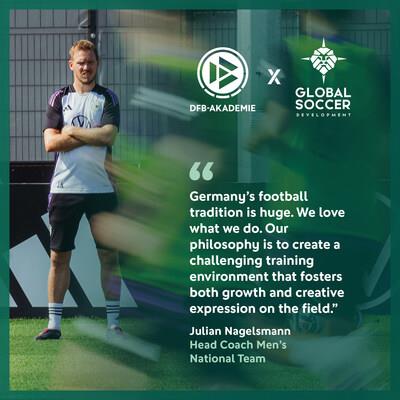 Julian Nagelsmann , the current head coach of the German national team and one of the most innovative minds in modern soccer, says, "Germany's football tradition is huge. We love what we do. Our philosophy is to create a challenging training environment that fosters both growth and creative expression on the field."