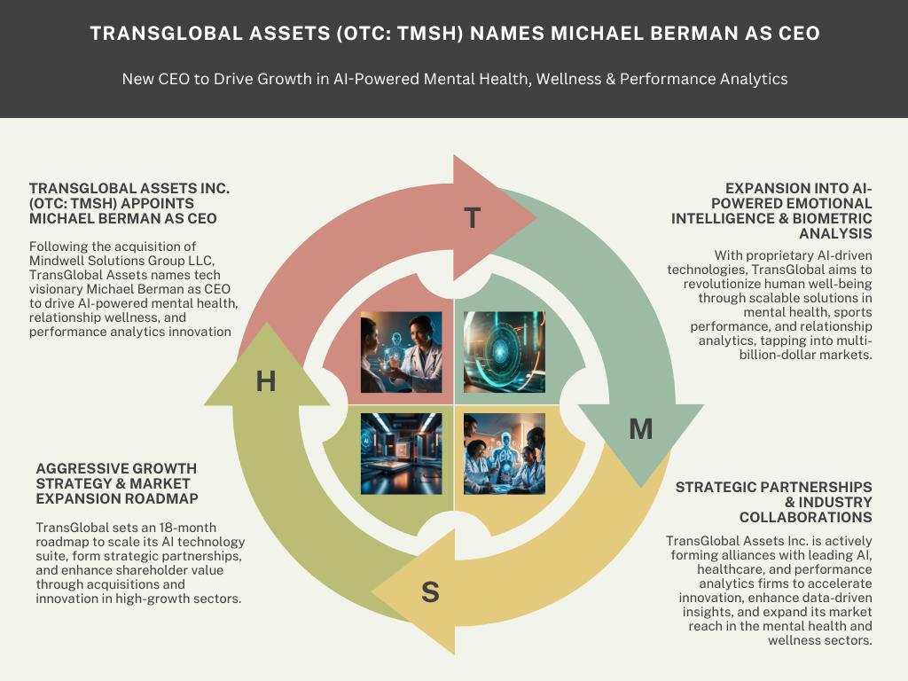 Michael Berman, CEO of TransGlobal Assets Inc., comments:“We are entering a new era where artificial intelligence is not just revolutionizing industries-it is fundamentally enhancing human lives. With the integration of Mindwell Solutions Group's groundbreaking AI-driven technologies, TransGlobal Assets is poised to lead the charge in mental health innovation, relationship wellness, and performance analytics. The need for scalable, precision-based solutions in these spaces has never been greater. Our strategic vision, first-mover advantage, and execution speed position us to capitalize on multi-billion-dollar opportunities while delivering real, measurable impact. This is more than just business-it's about shaping the future of human potential.”