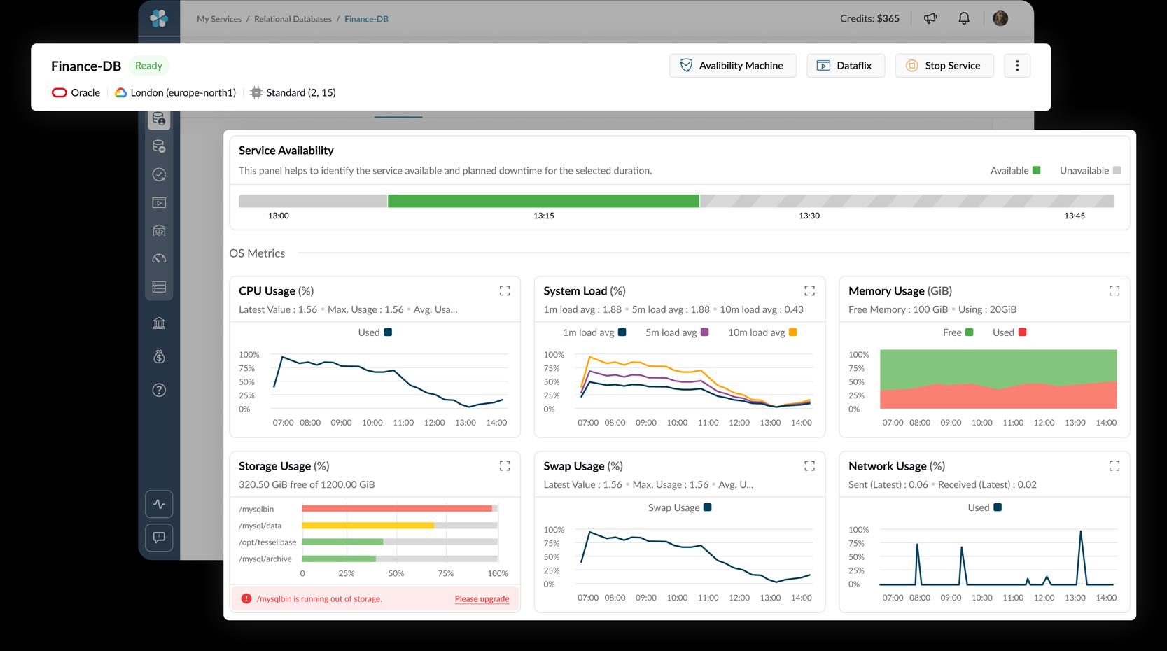 Tessell's DBaaS platform actively tracks and analyzes the performance, health, and usage metrics of databases hosted on the platform. This monitoring feature helps users to identify potential issues, optimize database performance, and ensure the overall reliability of their database infrastructure.