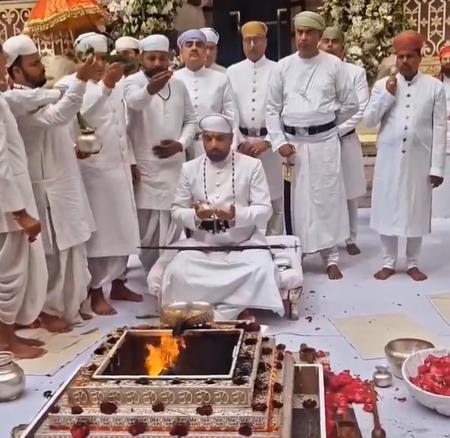 Lakshyaraj Singh Mewar was also seen dressed in white during the ceremony. His son, Haritraj Singh Mewar, sought blessings from saints on the occasion. Odisha Deputy Chief Minister and Lakshyaraj Singh Mewar's father-in-law, Kanak Vardhan Singh, also arrived at the Udaipur City Palace to attend the event.