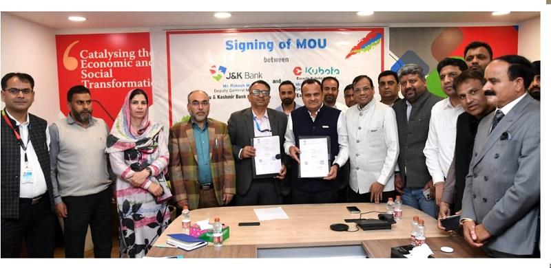 (MENAFN- Kashmir Observer) Srinagar- In a move aimed at promoting mechanization in agriculture and providing accessible financing to farmers across the country, J&K Bank Tuesday signed a Memorandum of Understanding (MoU) with Escorts Kubota (P) Ltd. (EKL) – a leading manufacturer and supplier of agricultural machinery, including hydraulic mobile cranes, earth-moving equipment, farm tractors and engines.