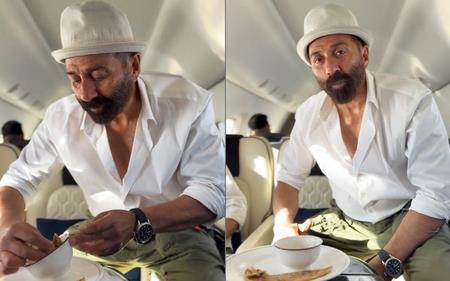 The actor's in-flight feast showcases his love for traditional flavors and the simple pleasures of home-cooked food. On Wednesday, the 'Gadar' actor took to his Instagram and shared a video of himself enjoying a parantha with curd. Sunny also added the theme song from his upcoming film“Jaat” to the video. In the clip, the actor can be seen holding a parantha in his hand while dancing to the catchy tune.