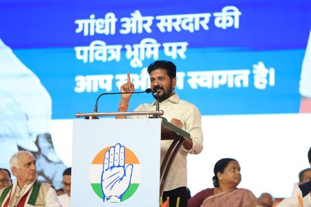 Addressing Chintan Baithak of the Congress Party on the banks of the famous Sabarmati river in Ahmedabad on Wednesday, Revanth Reddy vowed to stop the BJP in Telangana.