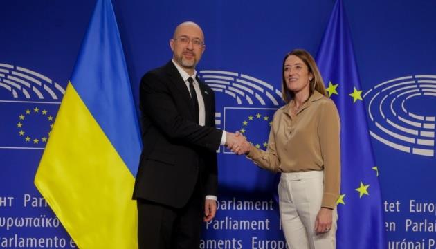 "I met with European Parliament President Roberta Metsola during my visit to Brussels. We discussed key initiatives for Ukraine. Specifically, I urged the European Parliament to support the extension of the 'transport visa-free regime,' enabling freight transportation to operate without requiring special permits. Additionally, we addressed Ukraine's efforts to establish a just and lasting peace, its European integration, and the confiscation of frozen Russian assets," Shmyhal wrote.