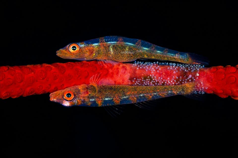 But most others break the mould entirely. For example, tiny gobies – just three centimetres long – cling onto whip corals and adopt a sit-and-wait approach for plankton to pass by.