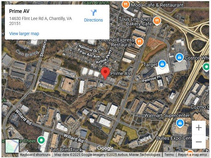 Prime AV Address: 14630 Flint Lee Rd A, Chantilly, VA 20151