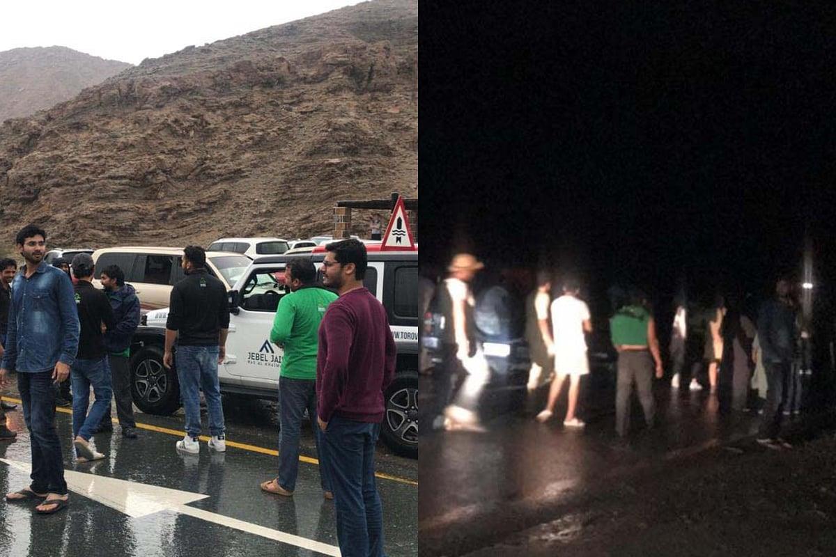Though all 300 vehicles remained parked along the roadside on the mountain, the rescued residents were safely brought to a hotel in the emirate.