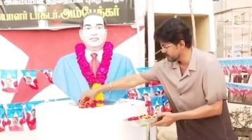 The tribute took place at the Ambedkar statue in Pallavakkam, Chennai, where Vijay offered flowers and garlands as a mark of respect.