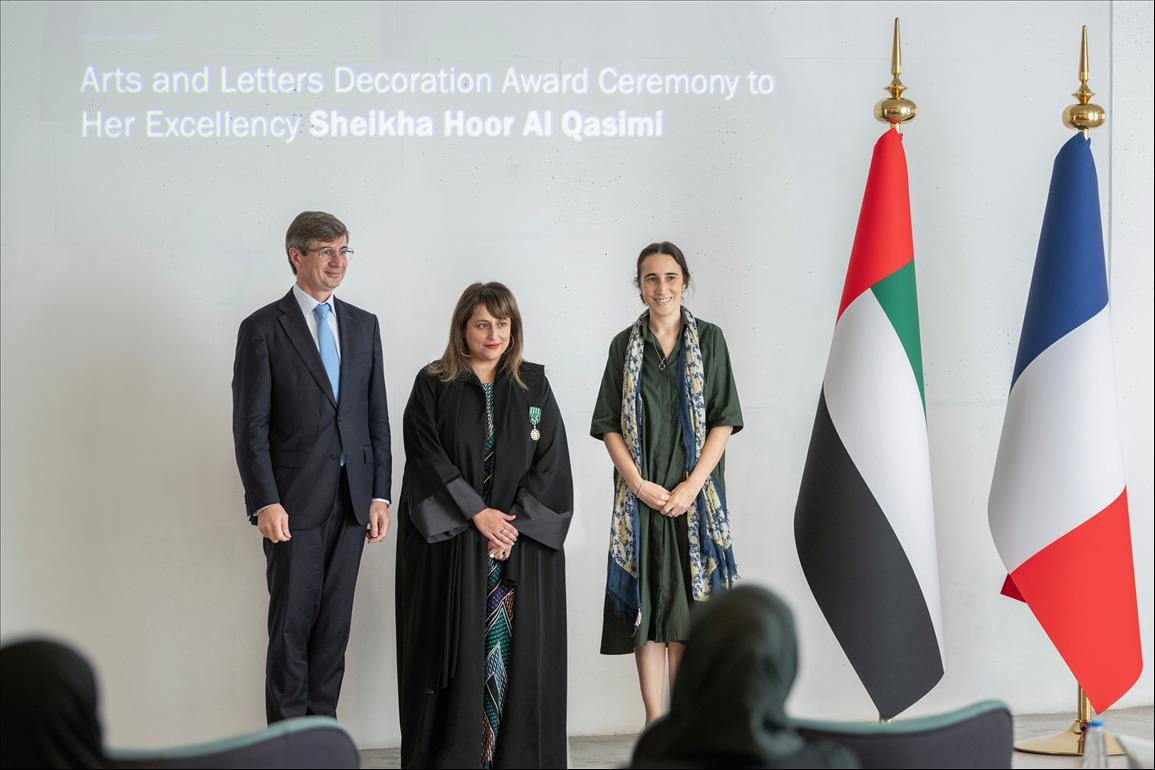 Niemtchinow commented, 'It is a great honor to award Her Excellency Sheikha Hoor Al Qassimi the insignia of Officer of the Order of Arts and Letters today in Sharjah. This award is a recognition of Sheikha Hoor's remarkable contribution to strengthening cultural and artistic ties between France and Sharjah and, more generally, between France and the UAE. Sheikha Hoor's commitment to Franco-Emirati friendship is further exemplified by her role within the Alliance Française of Sharjah. I also commend the Sharjah Biennial, which has become a reference in the world of contemporary art. Her Excellency Sheikha Hoor has always worked to showcase French and Francophone artists in this Biennial.'