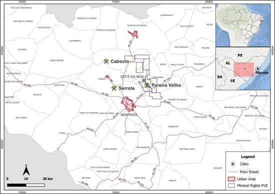 Figure 3 Geological map with the main lithologies and structural features within the Pereira Velho Project area.