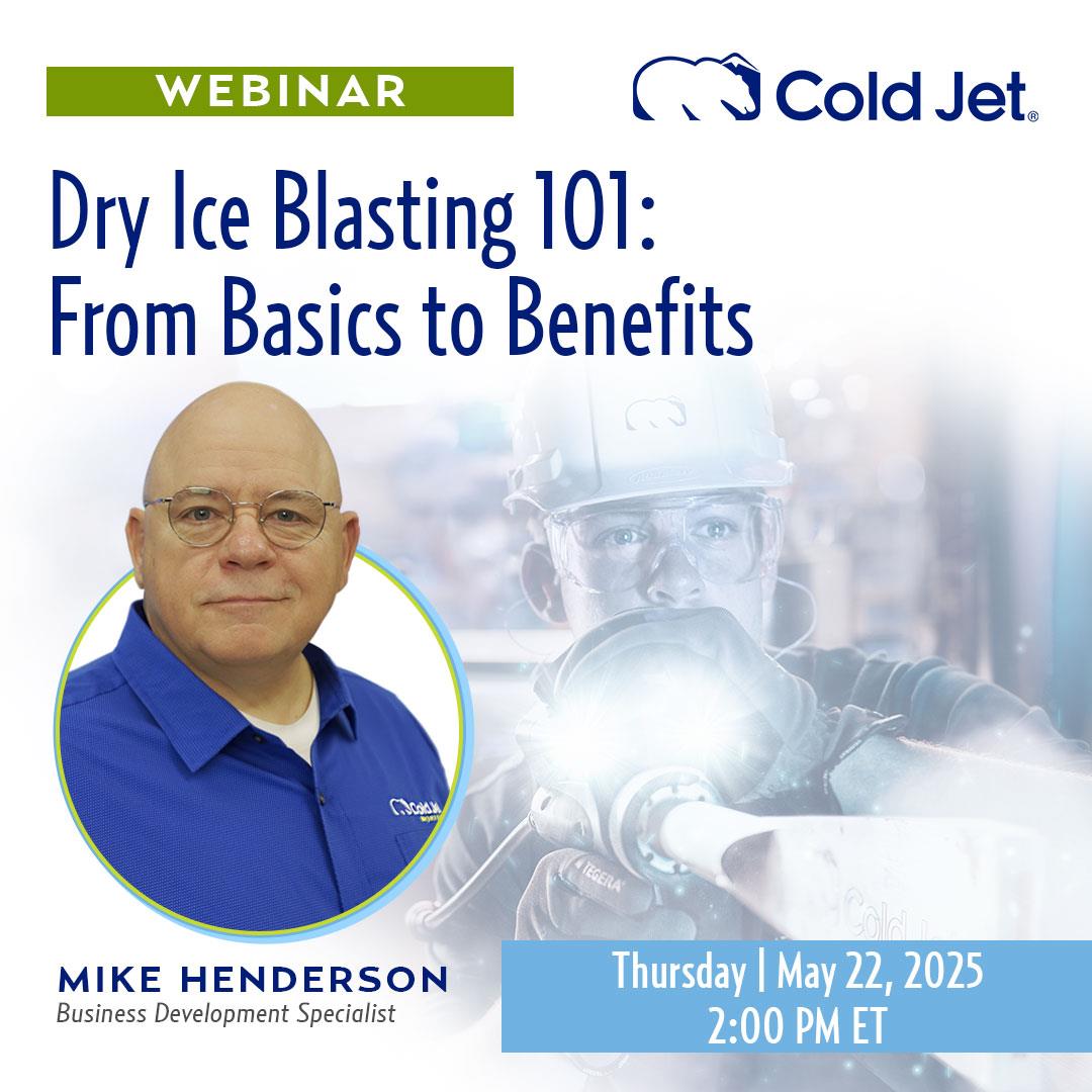 Scheduled for next month, May 22, at 2 PM ET, this informative webinar will be led by industry veteran Mike Henderson, Business Development Specialist for Cold Jet, who brings over three decades of invaluable experience in dry ice technology and specializing in dry ice blasting applications.