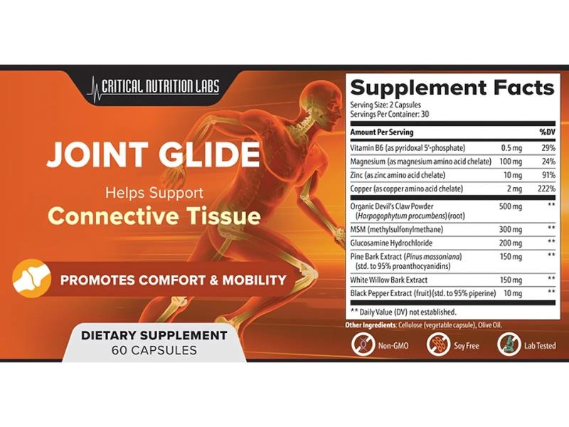 Joint Glide is an advanced joint support supplement developed by Critical Nutrition Labs . It combines natural anti-inflammatory compounds, connective tissue nutrients, and enzyme inhibitors to help reduce joint pain, improve flexibility, and support cartilage health-without the side effects of traditional pain medications.