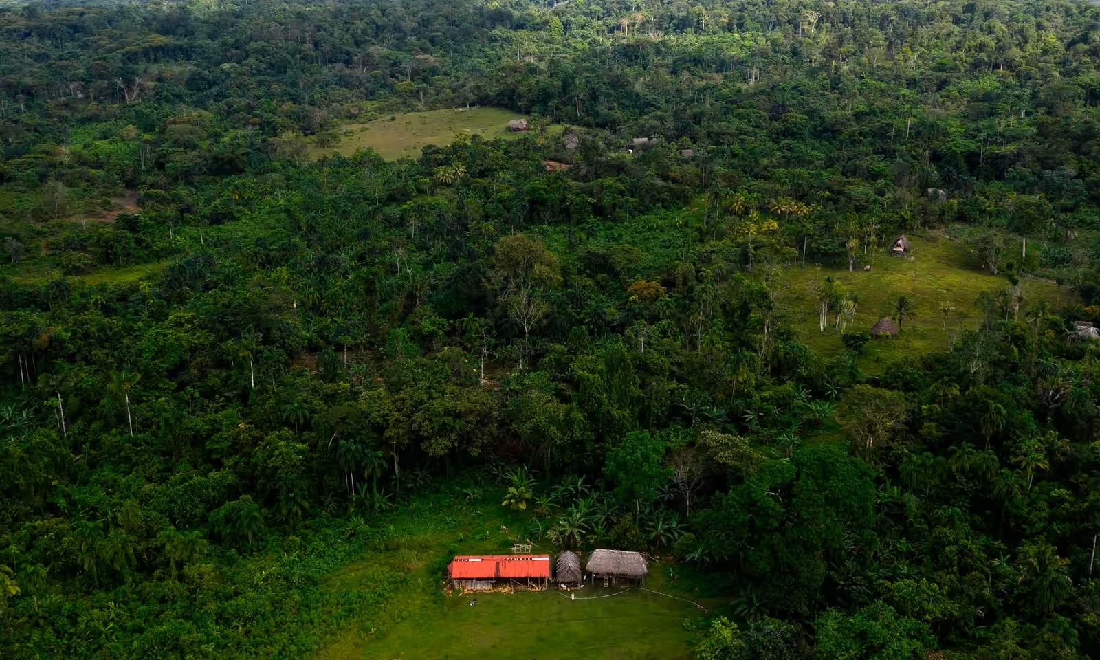 Aerial view of an improvised church where the massacre occurred, in Alto Terrón.