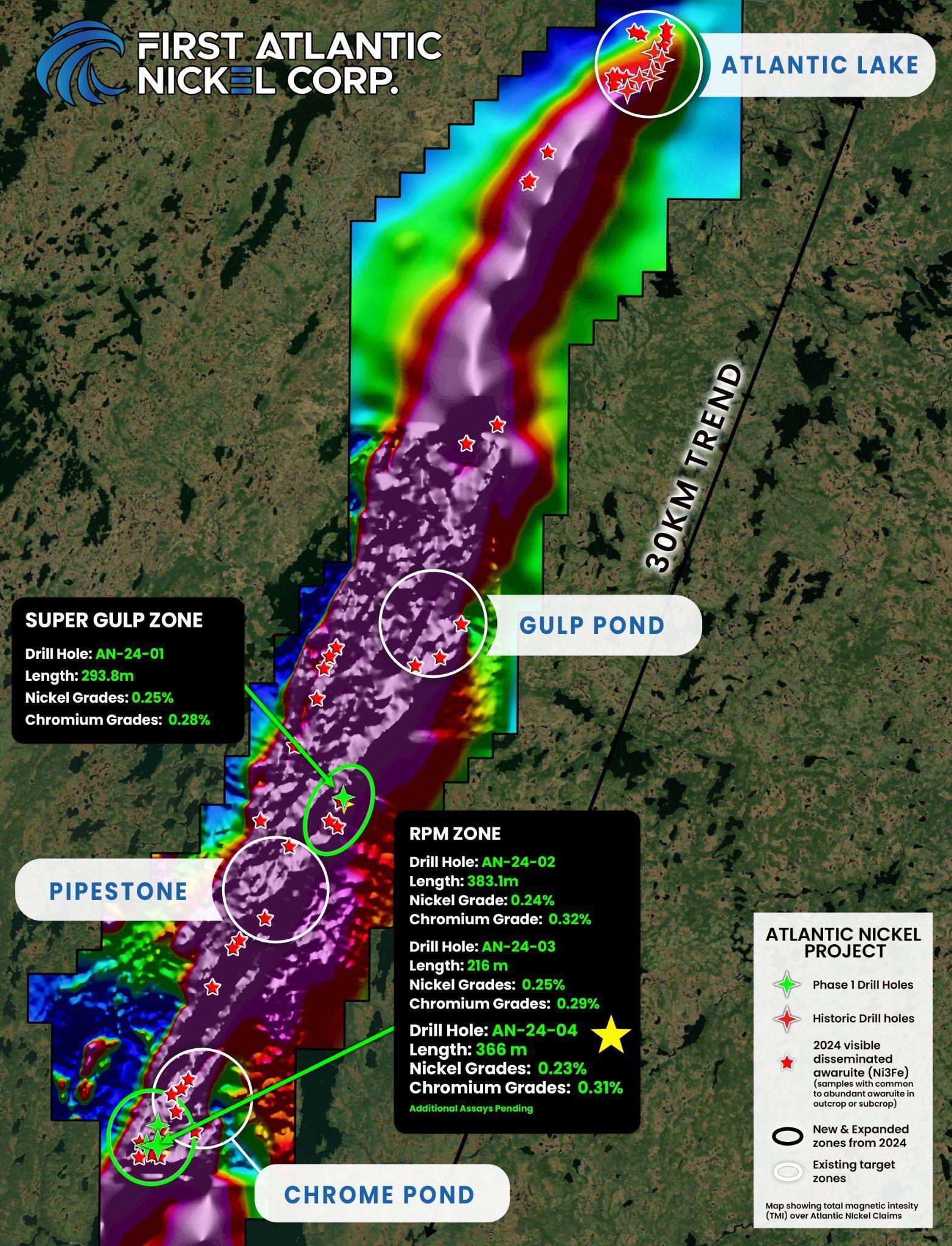 First Atlantic Nickel Intersects 0.23% Nickel And 0.31% Chromium Over 366 Meters In Third Drill Hole At RPM Zone, Confirming At Least 500-Meter Mineralized Width