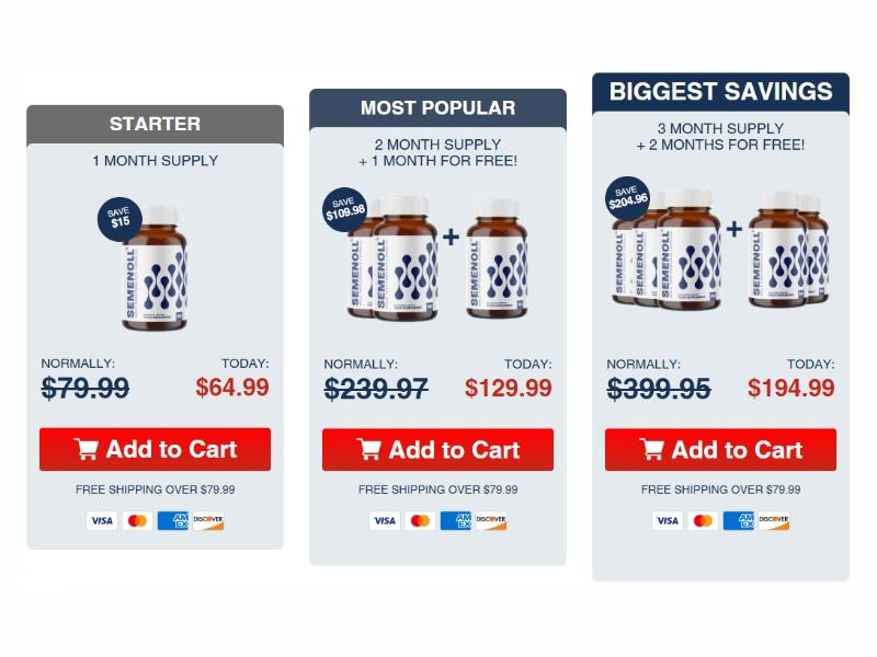 The most up-to-date pricing (as of April 2025) on the official website, Semenoll.com , is as follows: