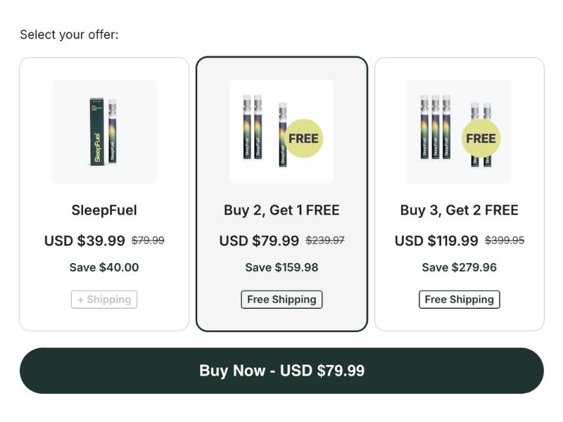 If you're tired of being tired, it's time to try something that actually works. Order SleepFuel today, choose the Buy 2 Get 1 Free package for the best balance of value and supply, and discover how easy sleep can be.