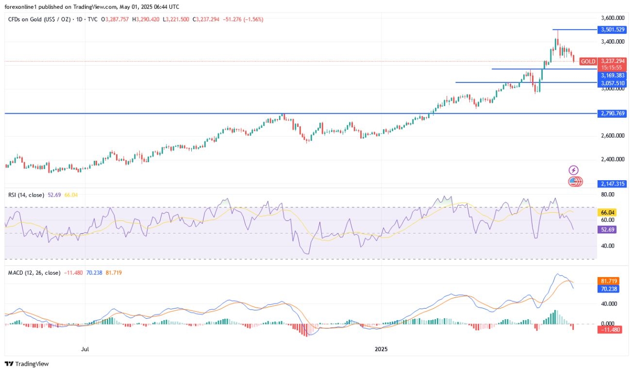 - Buy gold from the support level of $3,180, with a target of $3,285 and a stop loss of $3,155. Sell gold from the resistance level of $3,310, with a target of $3,100 and a stop loss of $3,380.