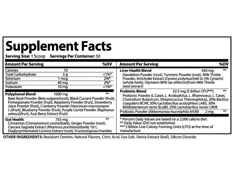 - A potent blend of prebiotics and probiotics that work together to restore gut balance. Liver-supportive ingredients like dandelion, milk thistle, and artichoke to assist with detoxification. A formulation designed to be gentle yet effective, suitable for individuals with sensitive digestive systems.