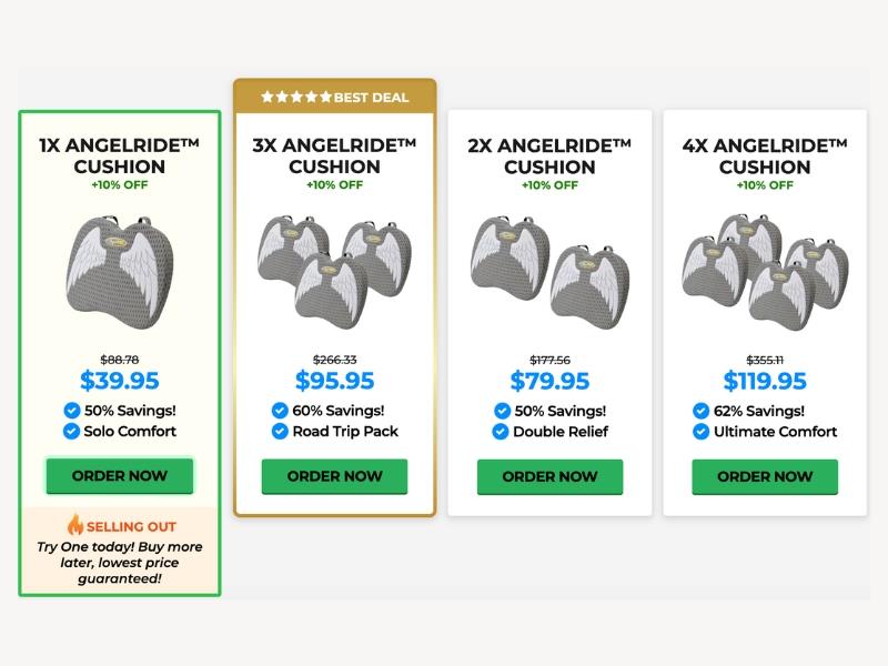 As of the time of writing, the AngelRide Cushion is typically available for around $39.99 , plus applicable shipping and handling fees. Some platforms may also offer bundled discounts or promotional offers for purchasing multiple cushions at once.