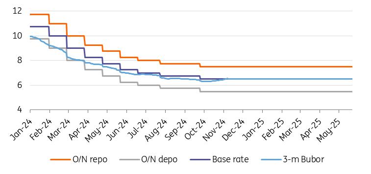 In fact, our baseline remains that there will be no rate cuts this year, as the Monetary Council now pays primary attention to elevated inflation expectations. We do not rule out the possibility that the situation in the last quarter of the year could allow for some easing, but we see little chance of this for the time being. However, if economic activity were to weaken significantly, there could be scope for unconventional easing measures, particularly through balance sheet interventions.
