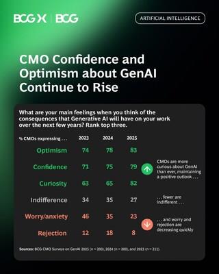 These are among the findings of BCG's report, titled How CMOs Are Scaling GenAI in Turbulent Times , released today. The report is based on a survey of 200 CMOs across Asia, Europe, and North America, conducted in April and May 2025.