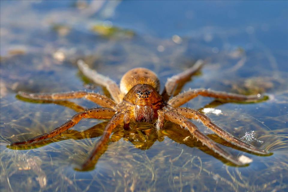 For example, fishing spiders wait at the water's edge and scuttle across the surface to grab insects, tadpoles or even small fish.