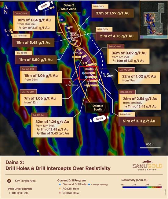 Sanu Gold Extends Mineralization At Its Daina 2 Target To Over 1.5Km And Makes A New Discovery At The Salat East Target