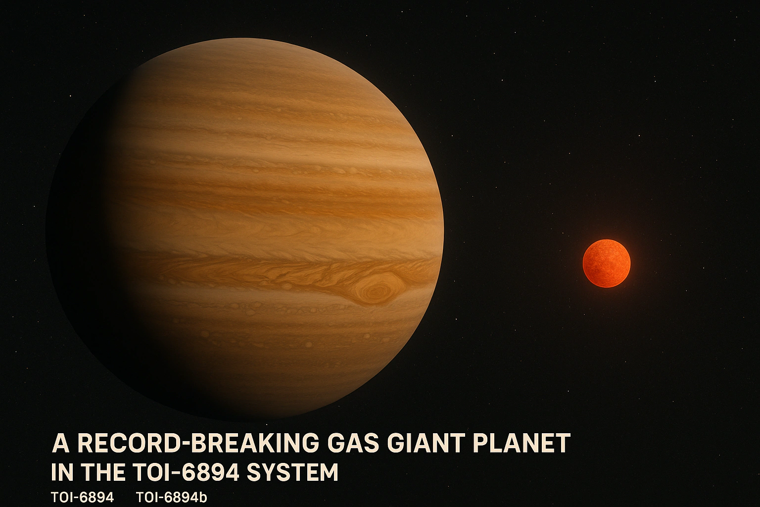 Astronomers have found a huge gas planet, named TOI-6894b, orbiting a very small star called TOI-6894, which has just 20% the mass of our Sun. This is surprising because such small stars weren't thought to be capable of forming or hosting giant planets.