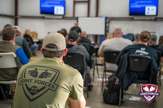 "A training session hosted by Joint Forces K9 Group shows participants engaged in a professional development class. The logo on uniforms and the screen presentation highlight the organization's focus on advanced K9 training and tactical teamwork."Joint Forces K9 Group has established itself as the premier canine training and boarding facility in Northwest Arkansas, offering comprehensive programs ranging from basic obedience to specialized protection training. With veteran-owned expertise, climate-controlled facilities, and flexible service options, the company continues to provide professional, compassionate animal care to pet owners throughout Siloam Springs and the greater Northwest Arkansas region.