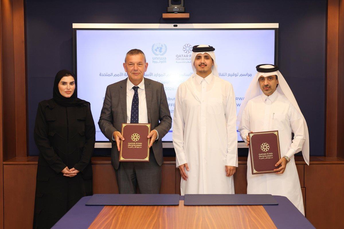 Doha: Qatar Fund for Development (QFFD) and the United Nations Relief and Works Agency for Palestine Refugees in the Near East (UNRWA) signed Tuesday an agreement to support UNRWA's resources for 2025-2026 with an amount of USD 20 million, at a rate of USD 10 million annually.