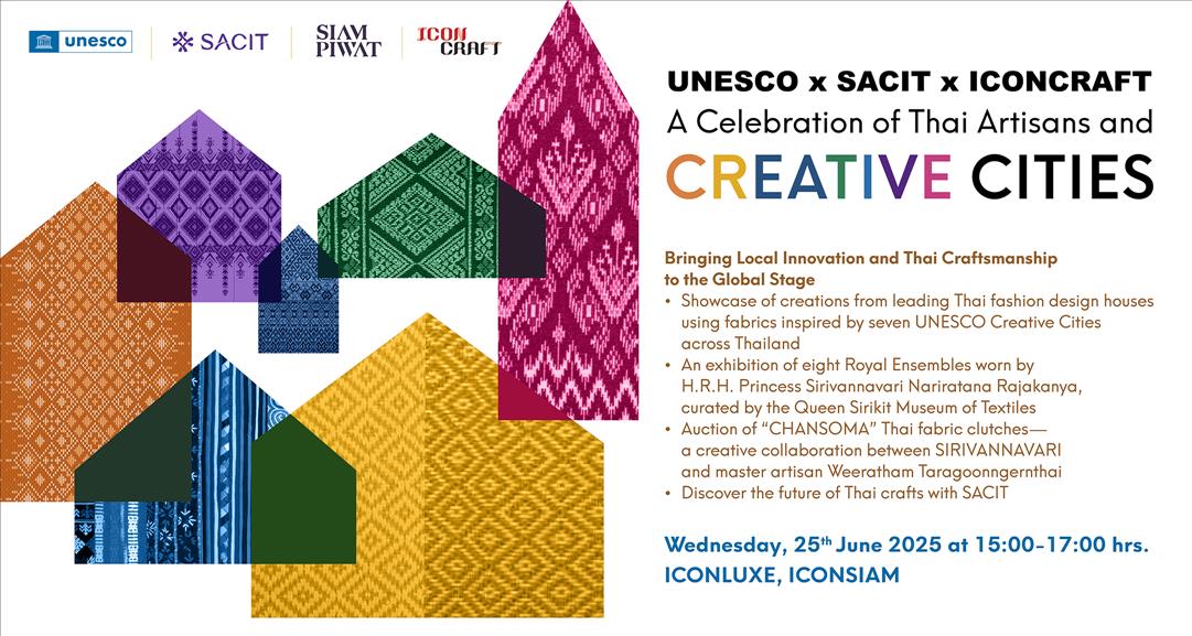 BANGKOK, THAILAND – Media OutReach Newswire – 19 June 2025 – UNESCO and Sustainable Arts and Crafts Institute of Thailand (Public Organization) , a national agency promoting Thai craftsmanship, have joined hands with ICONCRAFT -Thailand's hub of creative innovation–to launch the campaign, “UNESCO x SACIT x ICONCRAFT: A Celebration of Thai Artisans and Creative Cities.”